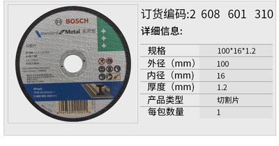 Bosch 100x1 2x16 metal cutting sheet 100mm corner grinding sheet angle grinding grinding machine grinding wheel cutting sheet