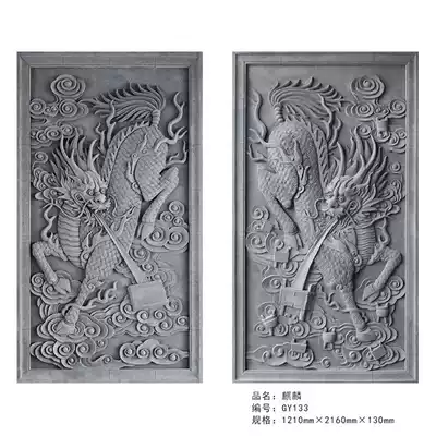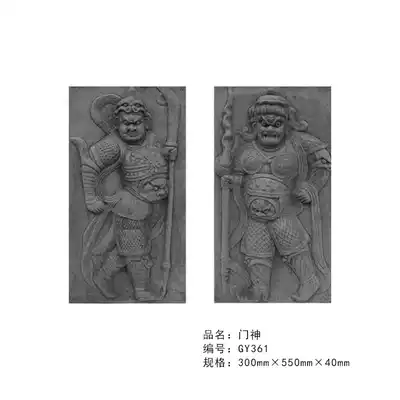 Antique brick carving Chinese relief quadrangle door decoration brick carving Door God brick carving 1 pair of evil door gods