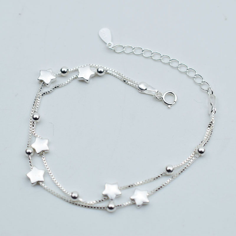 s925 sterling silver double-layer star hand female trendy Japanese and Korean simple temperament Sen students sweet birthday gift