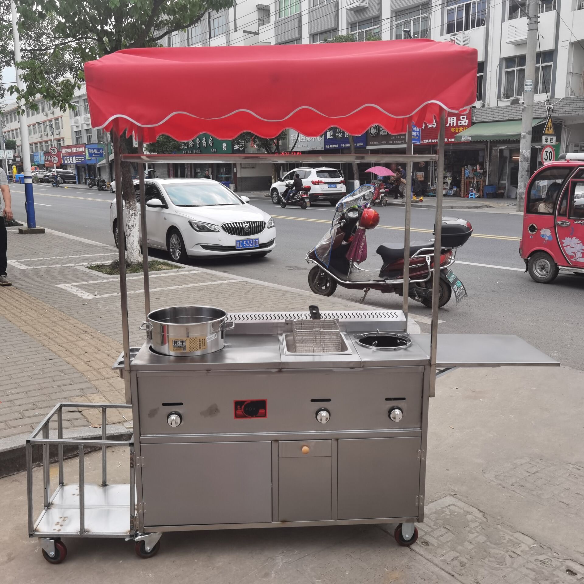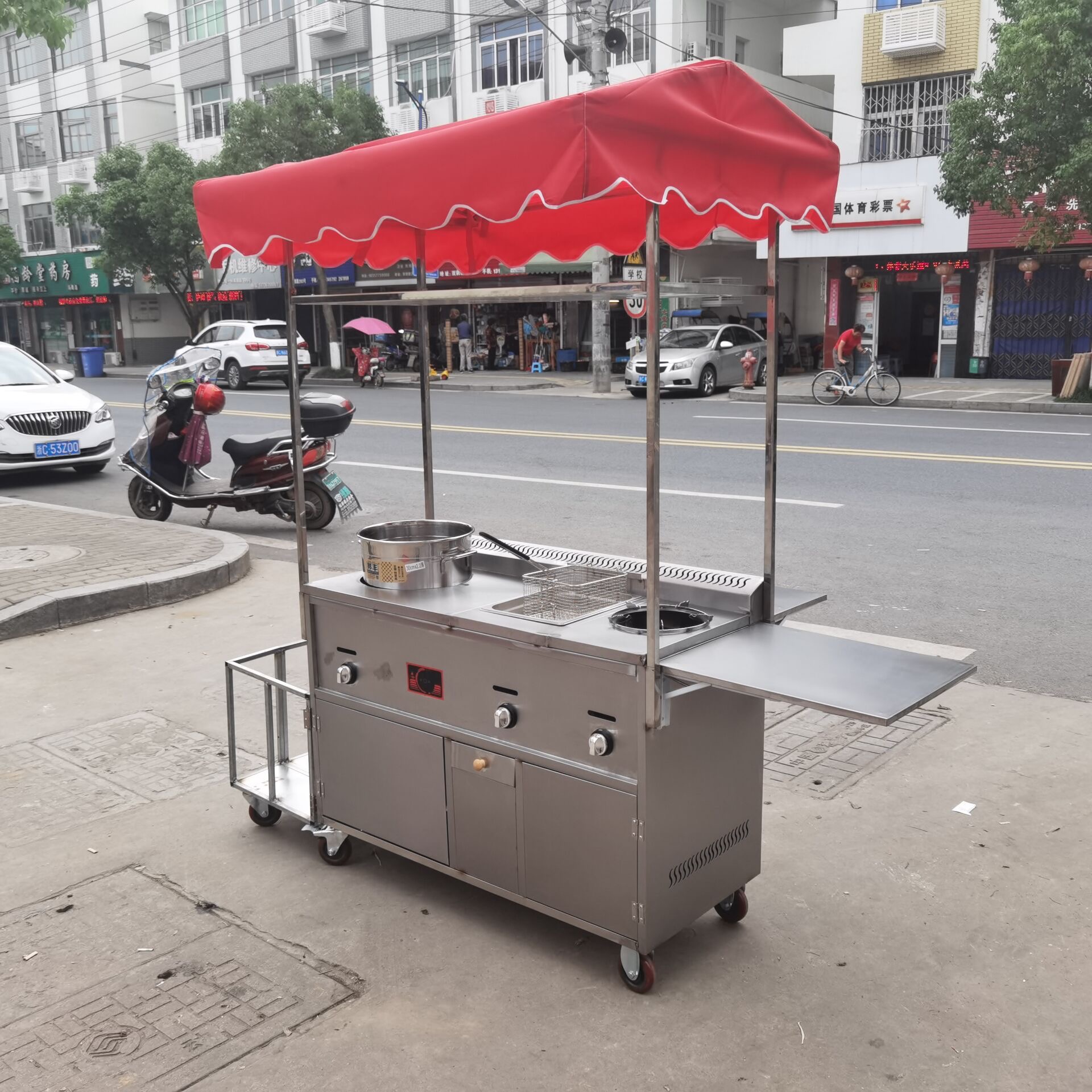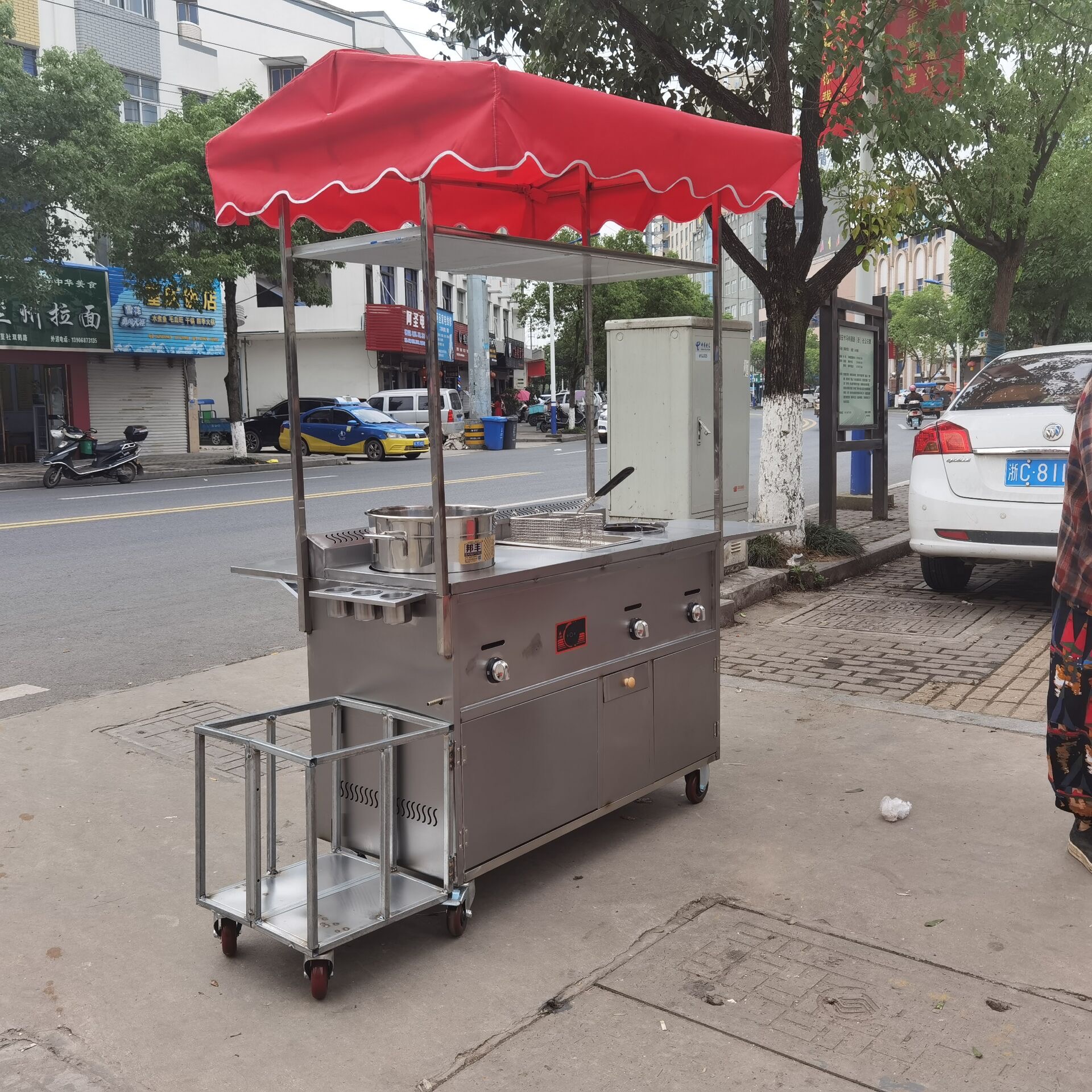 Snack cart full set of upgraded noodle cooker + frying + oden table top with umbrella canopy extension plate high pot 30*30 + frying + oden deep frying + oden iron plate + frying + frying snack car high pot