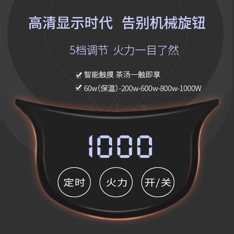 Black crystal stove Household tea maker Large and small tea set tea stove High-power commercial multi-function tea ceremony kettle round