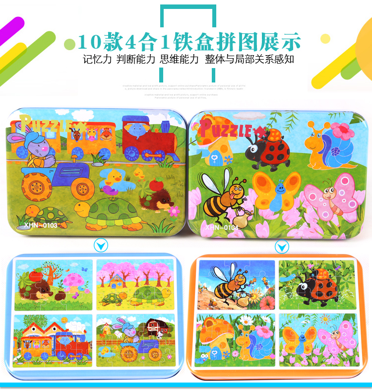 Iron box cartoon animal jigsaw puzzle kindergarten children small and medium class holiday birthday gift return gift creative prize