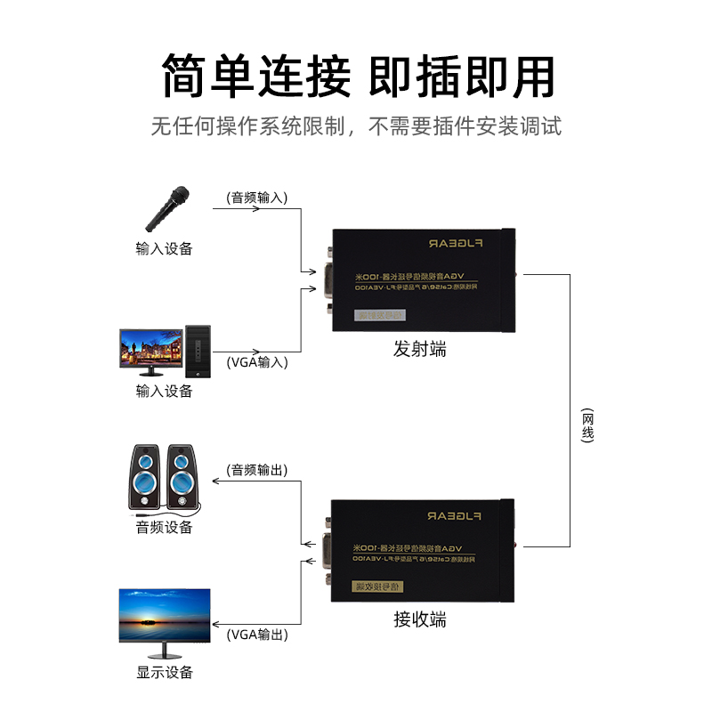 Fengjie Yingchuang VGA extender 100m 300m one-to-many signal amplification enhanced network transmitter audio to rj45 network port 1080p surveillance HD video repeater