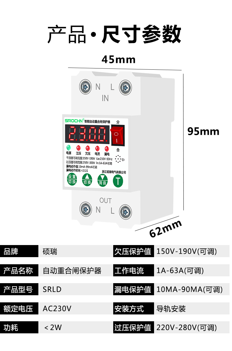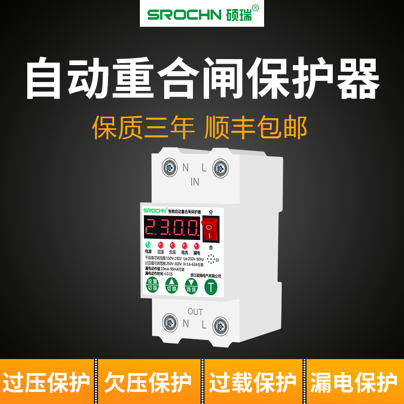 Shuorui overcurrent protector short circuit self-resettable overvoltage undervoltage automatic recloser leakage power rationing switch to ensure safety
