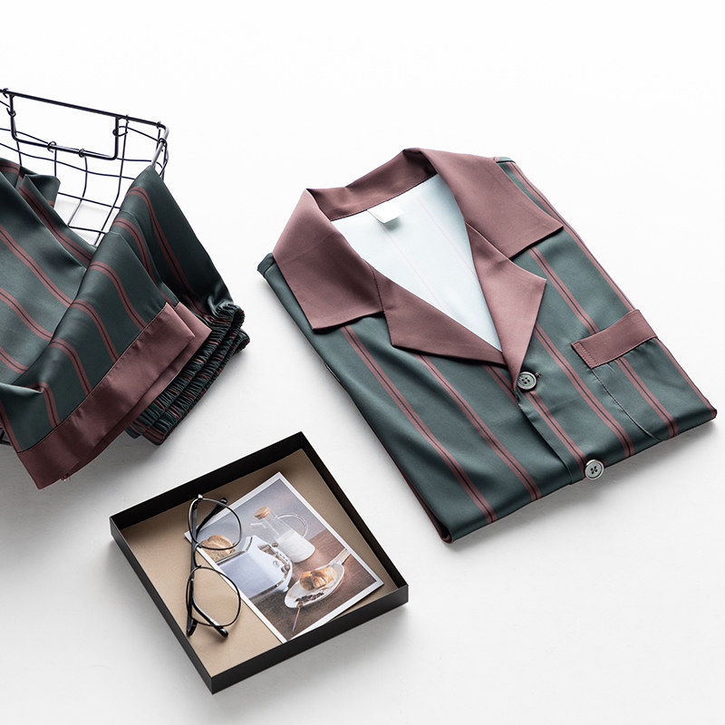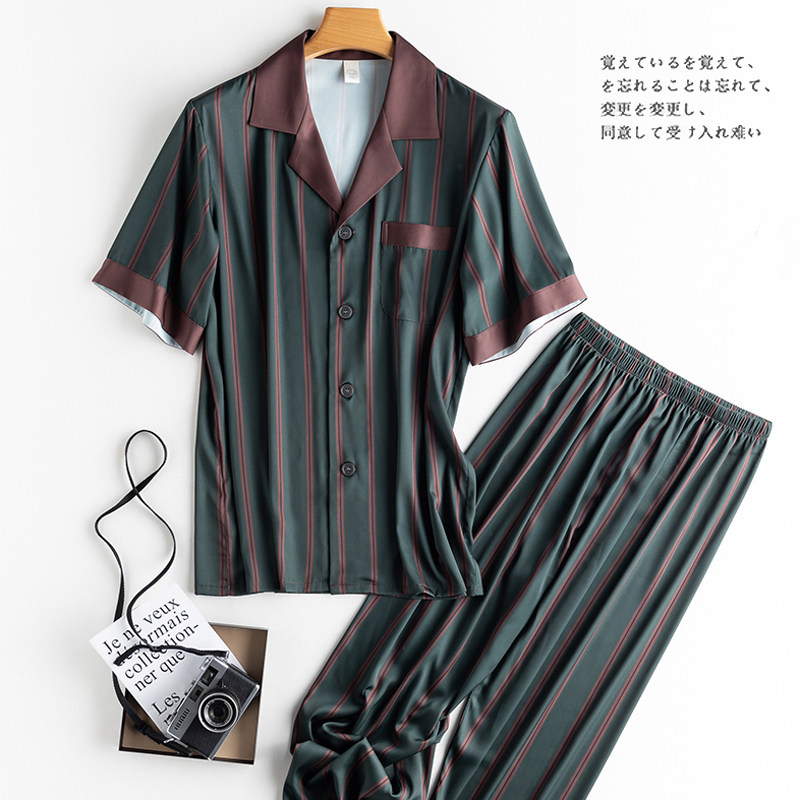 Summer thin silk high-end pajamas men's short-sleeved trousers suit men's spring and autumn silk large size home clothes summer