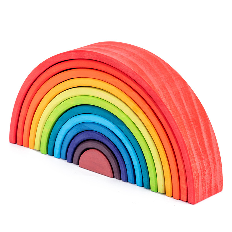 Rainbow Building Blocks 12 Color Pieces Large Arch Bridge Semi-circular Children Early Teach Wooden Build Stacking Sensory Integration Training Toys