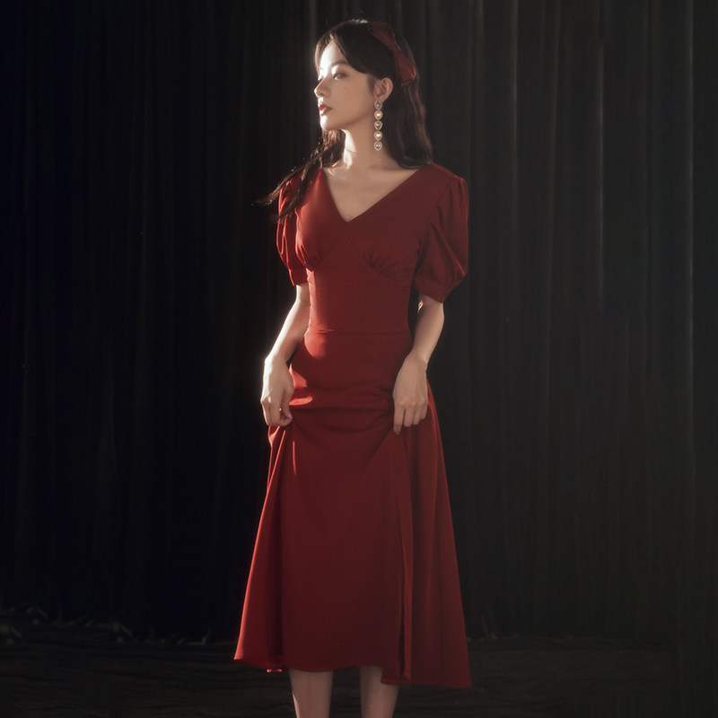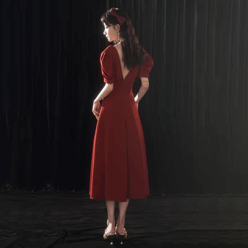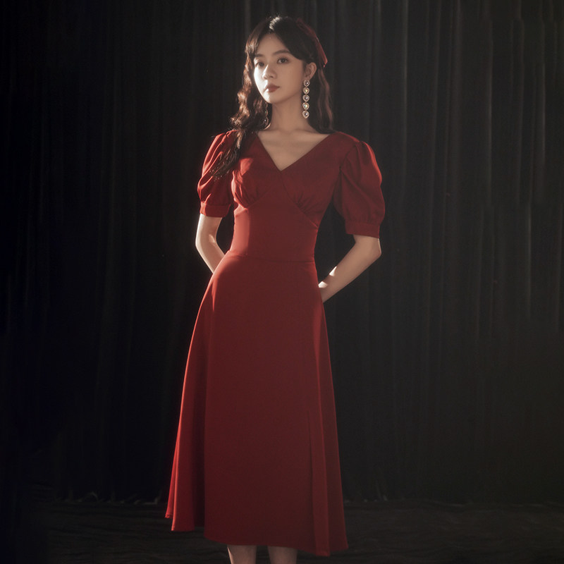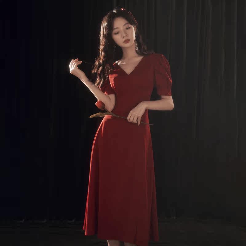 Bridal satin toast dress 2021 new wedding engagement temperament back door dress skirt summer can usually be worn atmospheric