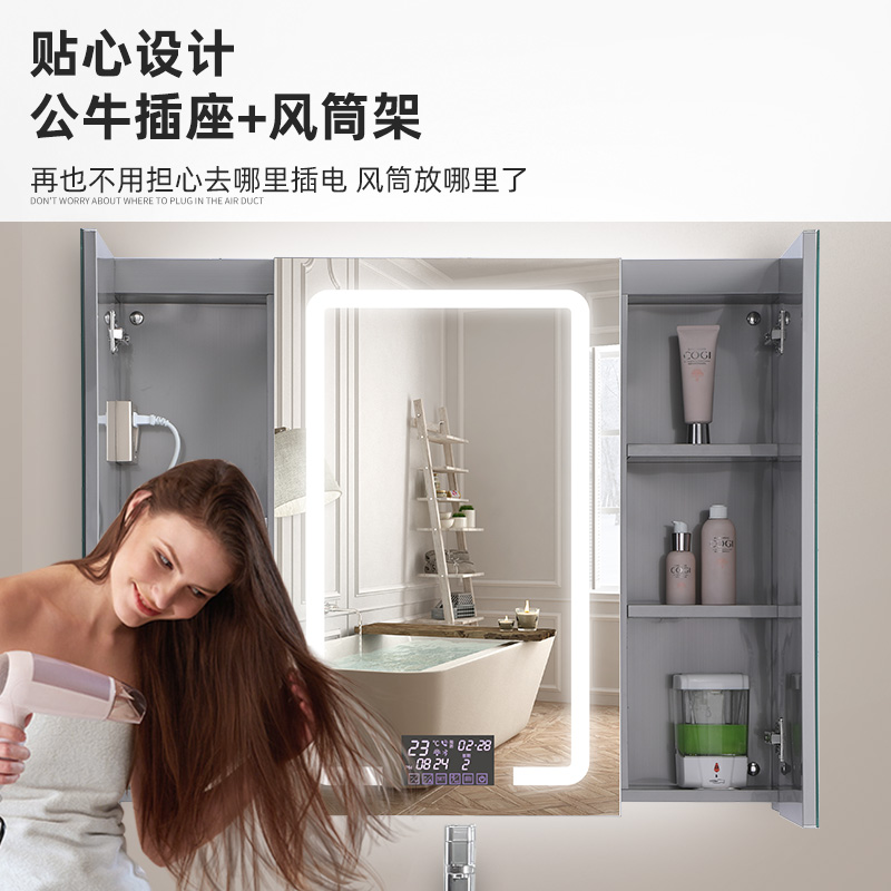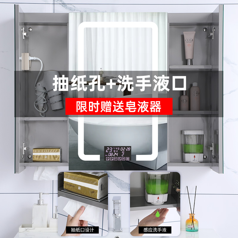 Bathroom smart mirror cabinet with lamp defogging touch hand sanitizer with socket Dressing Room Extraction toilet paper hanging wall style individually customised