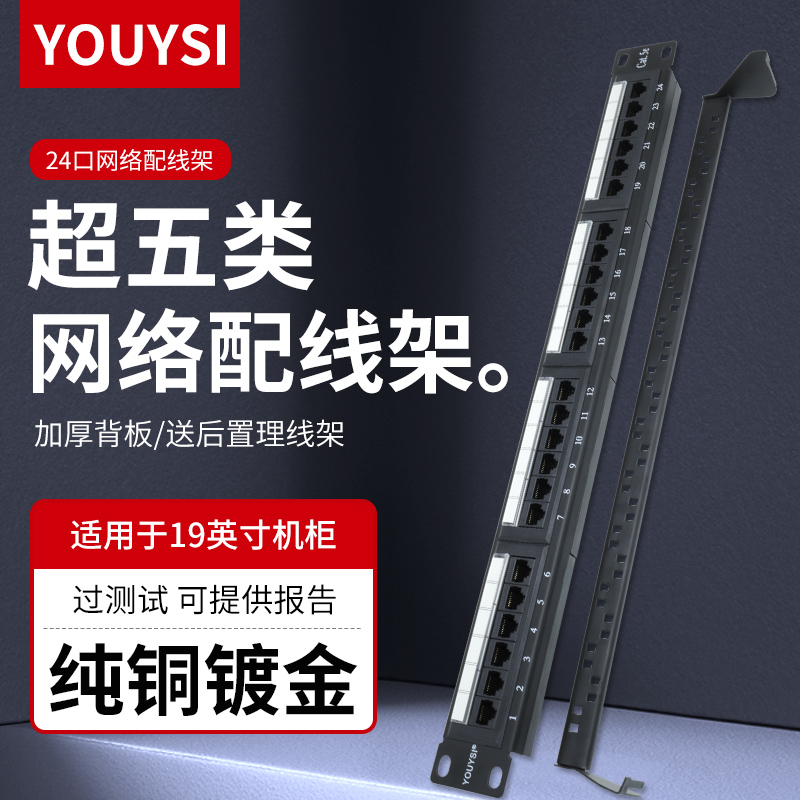 YOUYSI network network cable cable cage cat6 six types of 24-port no-hit network patch panel 48 ports super five-channel network cable patch panel 12 gear cabinet cable management rack