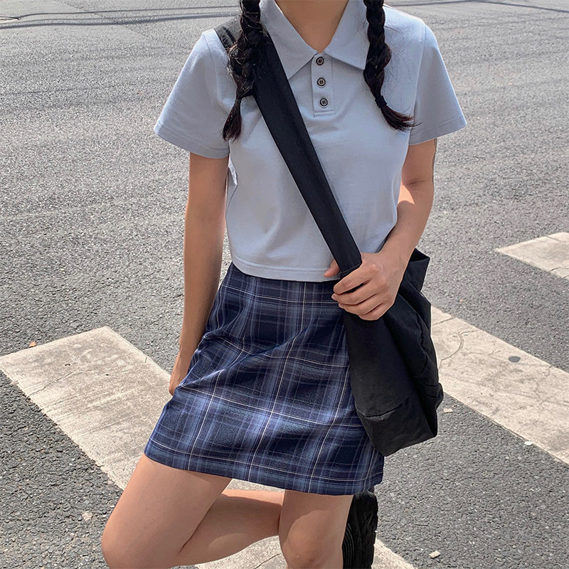RAINY homemade polo collar T-shirt female Japanese vitality girl short sleeve T-shirt summer new bm style blouse sweet