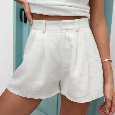 ITSNIKAR white cotton linen shorts women 2021 new summer thin French high waist loose casual pants