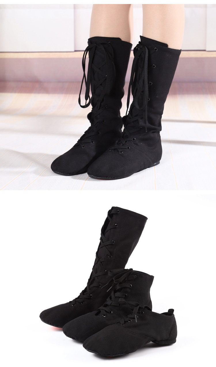 National Dance Jazz Boots Outdoor Canvas High Cylinder Shoes Children Adults Men And Women Soft-bottom Practice Shoes Ballet Dancer Dance Shoes