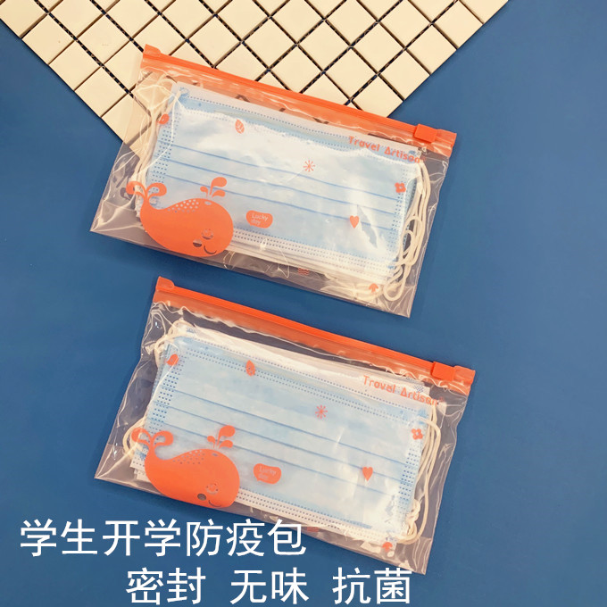 Mask Cashier Bag Children Student Mouth Nose Cover Clip Containing Box Pull Chain Seal Bag Portable Carry-on Nursery