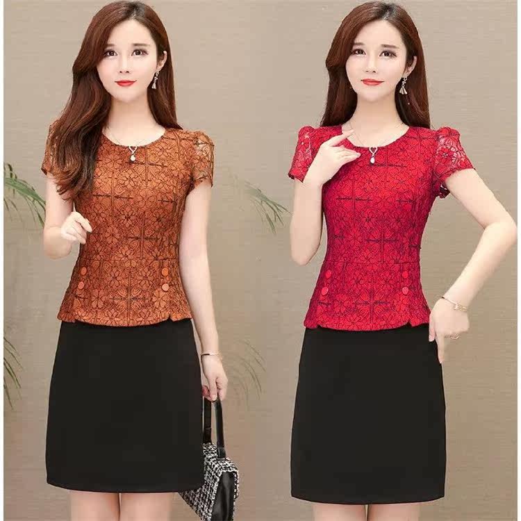 Ocean Dress Summer Middle Age Large Size Mother Dress Short Sleeve Korean version Skinny pack Hip Fake two sets of foreign dress