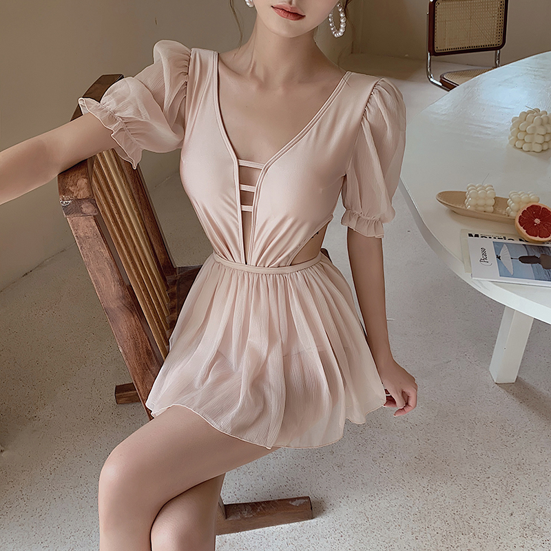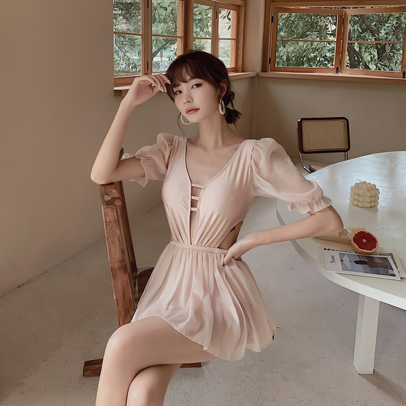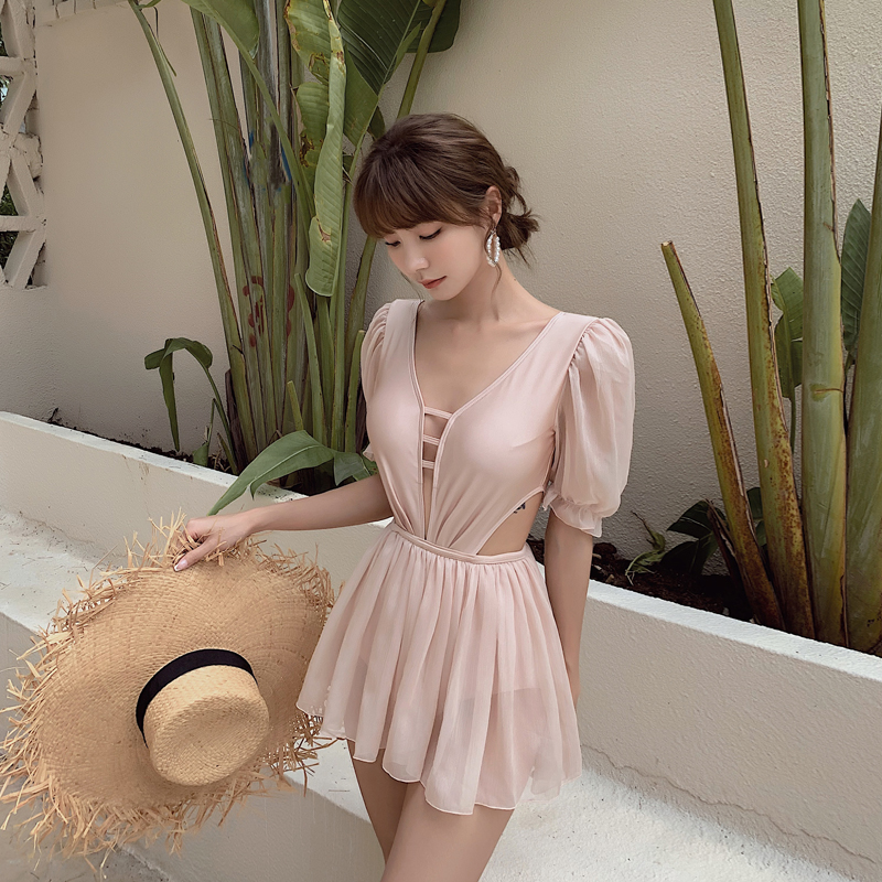 Kim-ju Korea ins swimsuit women 2020 new jumpsuit cover-up thin skirt sexy fairy student swimsuit