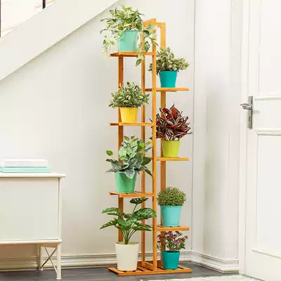 Flower pot shelf storage multi-layer bamboo living room balcony Golden Ge shelf floor-standing decoration interior modern simple in