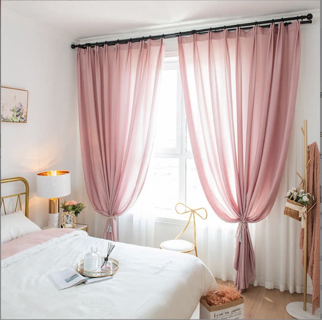 Modern minimalist white yarn thickened tencel yarn velvety drapery curtain light pervious to people high pituitary living-room bedroom yarn