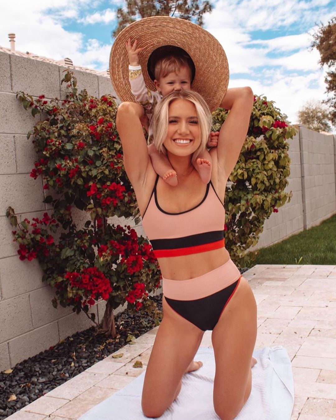Color stripe bikini high waist two-piece swimsuit simple bikini Europe and the United States triangle thread swimsuit