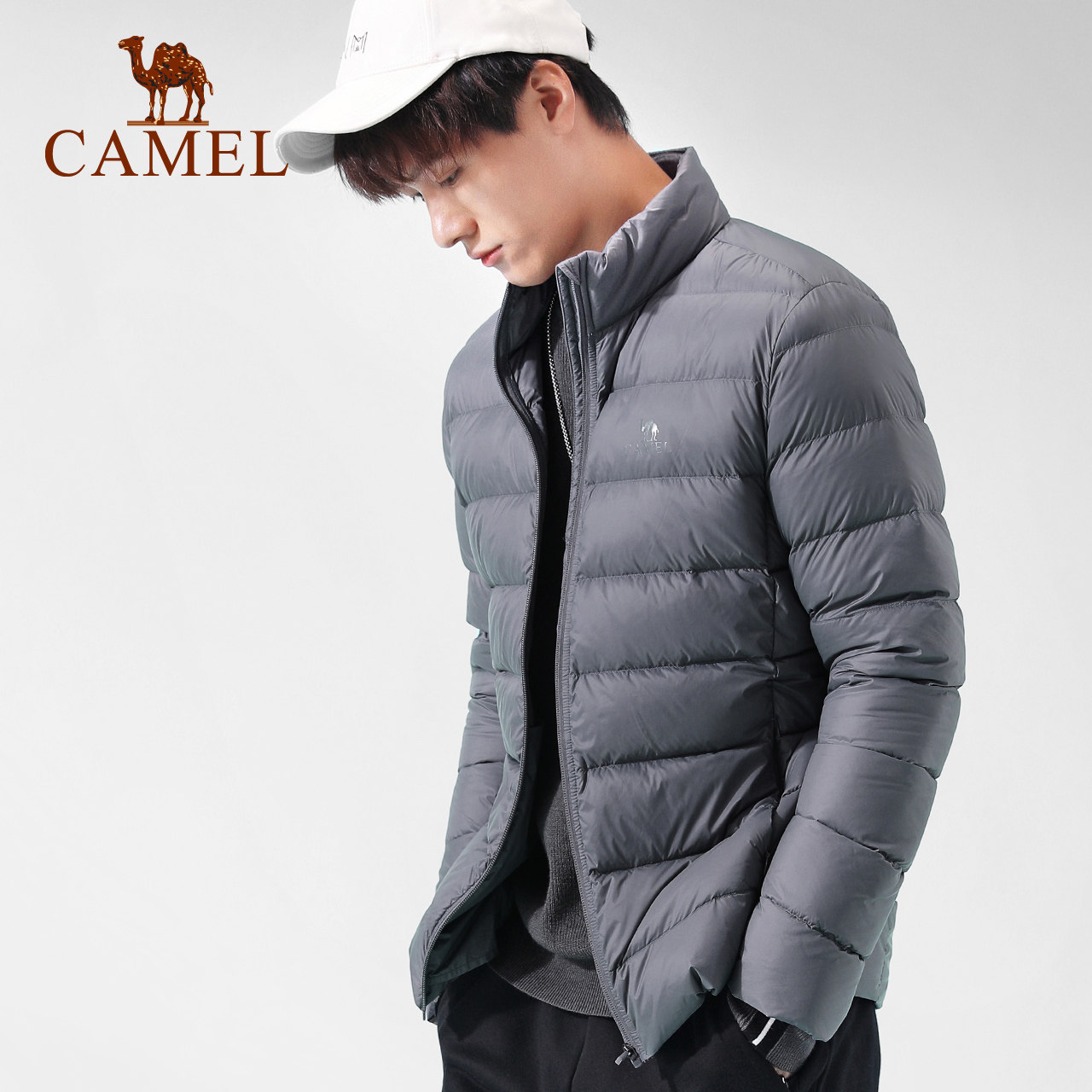 Camel official light and thin down jacket for men 2021 Winter new stand-up collar warm up for short sports jacket woman
