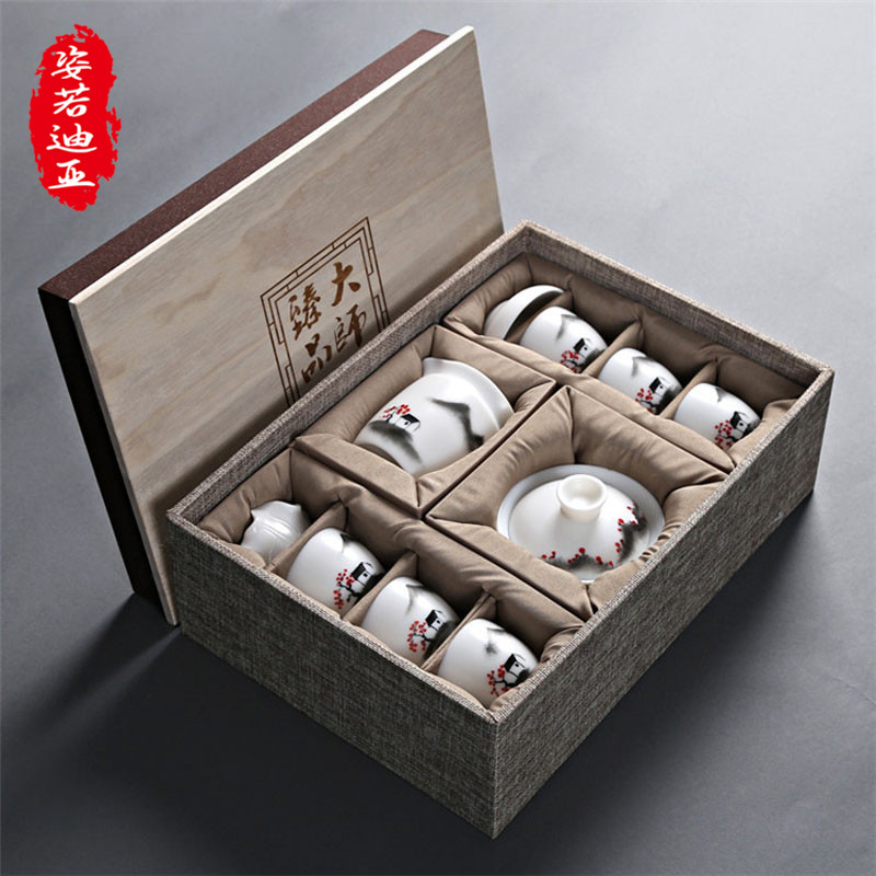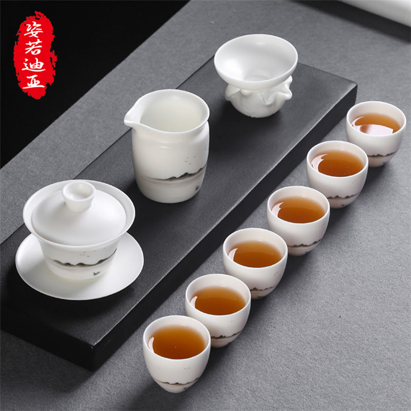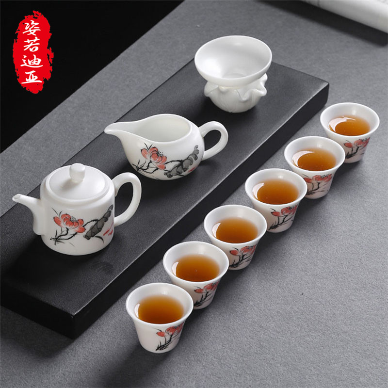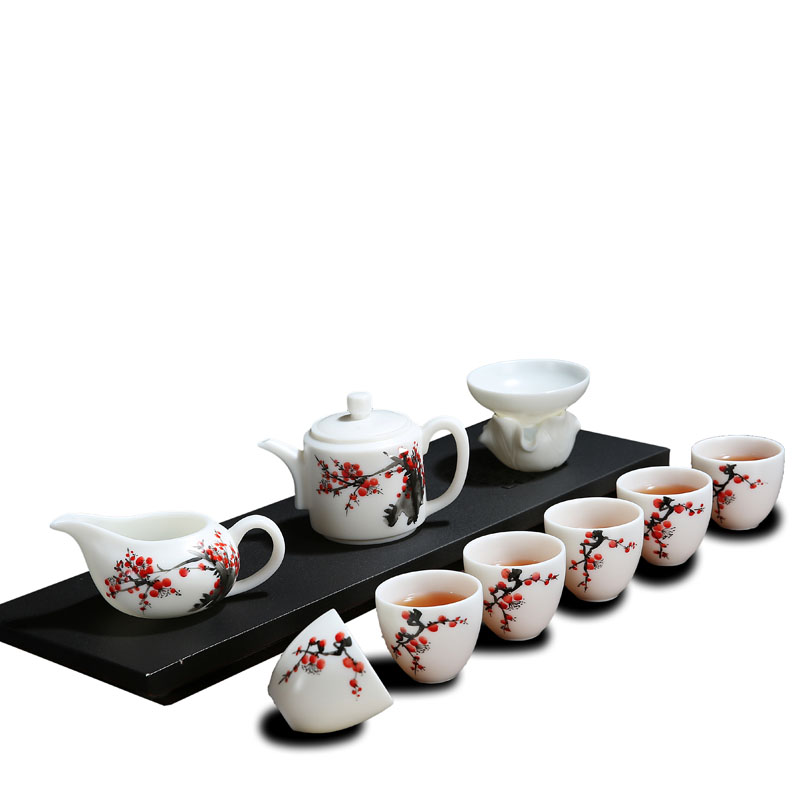White Porcelain Tea Set Group (Landscape People) White Porcelain Tea Set Group (Jiangnan Water Township) White Porcelain Tea Set Group (Fish Play Lotus Pond) White Porcelain Tea Set Group (Mei Kaifu Expensive)