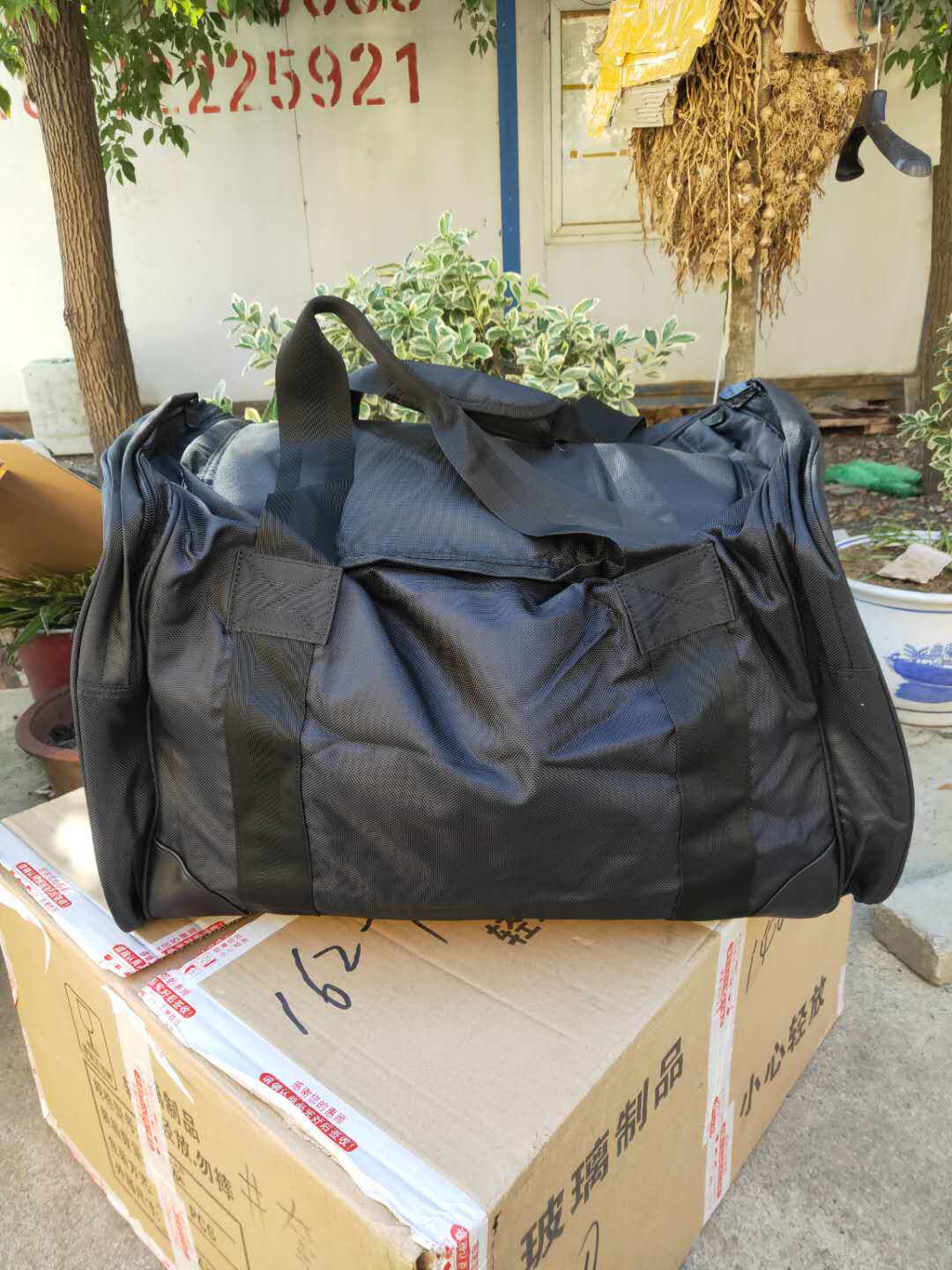 Left behind to be bagged black big to be loaded with handbag