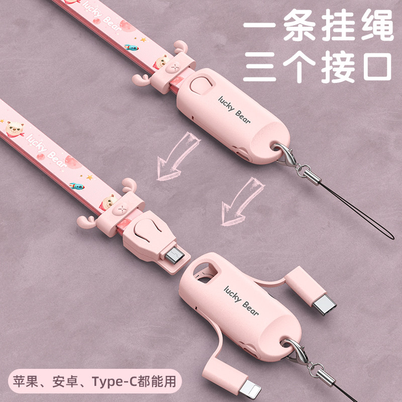 koolook rechargeable mobile phone lanyard data cable is suitable for Apple Android type-c interface multifunctional three-in-one USB fast charging cable trend one-to-three data cable Xiaomi op