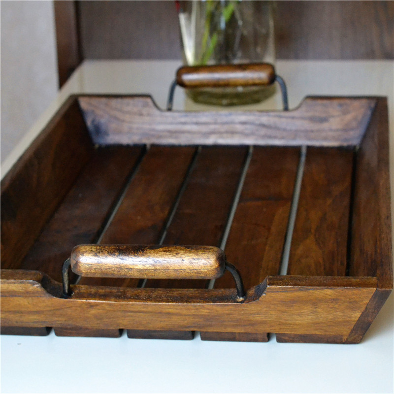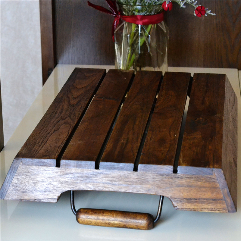 Thai ornaments rectangular solid wood tea tray light luxury tray dining room serving plate creative retro towel tray