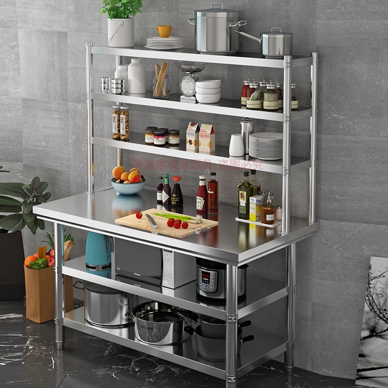 Stainless steel vertical milk tea shop countertop workbench countertop two-story kitchen storage shelf operation table shelf