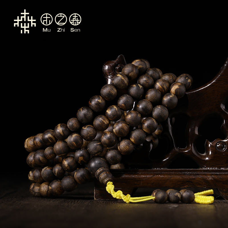 (Zhendianbao) Vietnam Nha Trang White Chess Nan Sinking Water Grade Cooked Old Material 8mm*38 8g Agarwood Buddha Beads