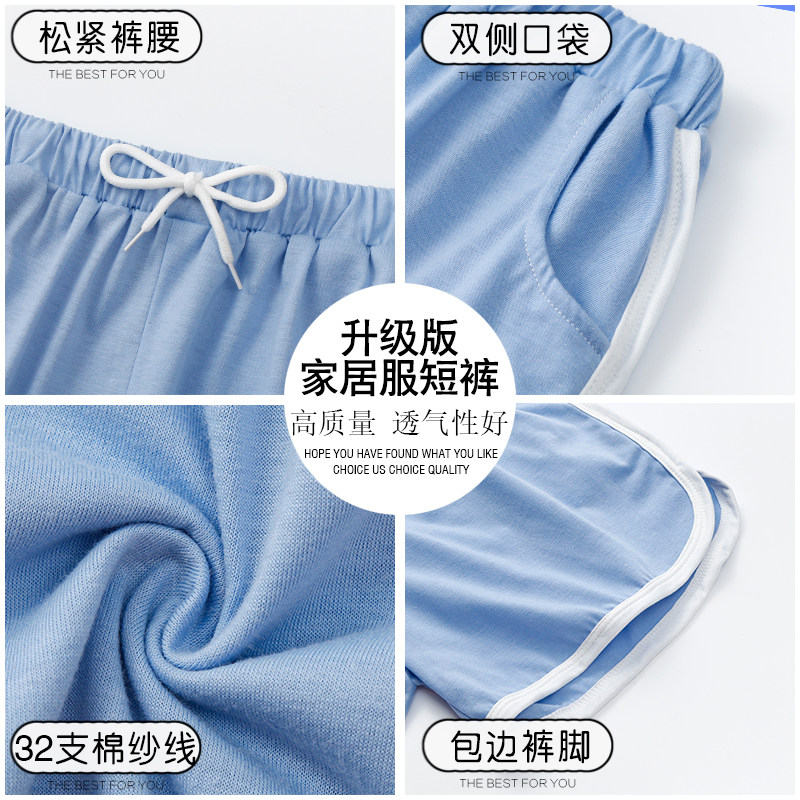 Pure cotton short sleeping pants female summer thin section pure color large size 170 catty mm loose full cotton casual outwear for home pants