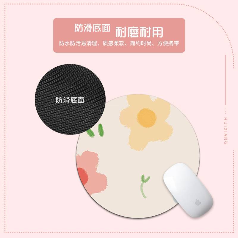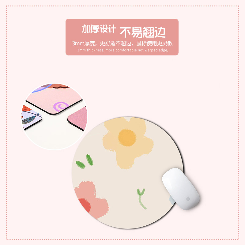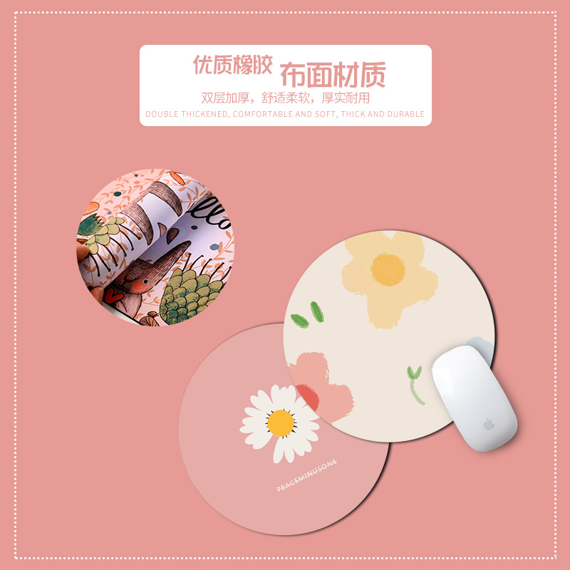 Mouse pad small round girl cartoon cute waterproof medium table game desktop simple computer cloth plastic pad thickened wrist protection desk mat Household durable small fresh ins wind