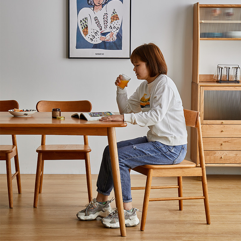 Nordic all solid wood rectangular dining table and chair combination Japanese small family table simple one table four chairs log table