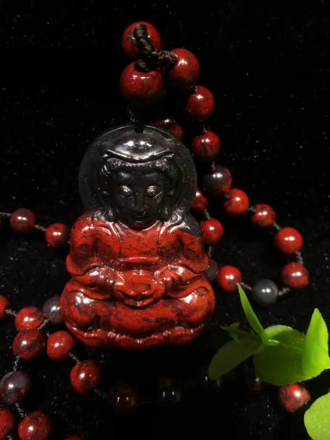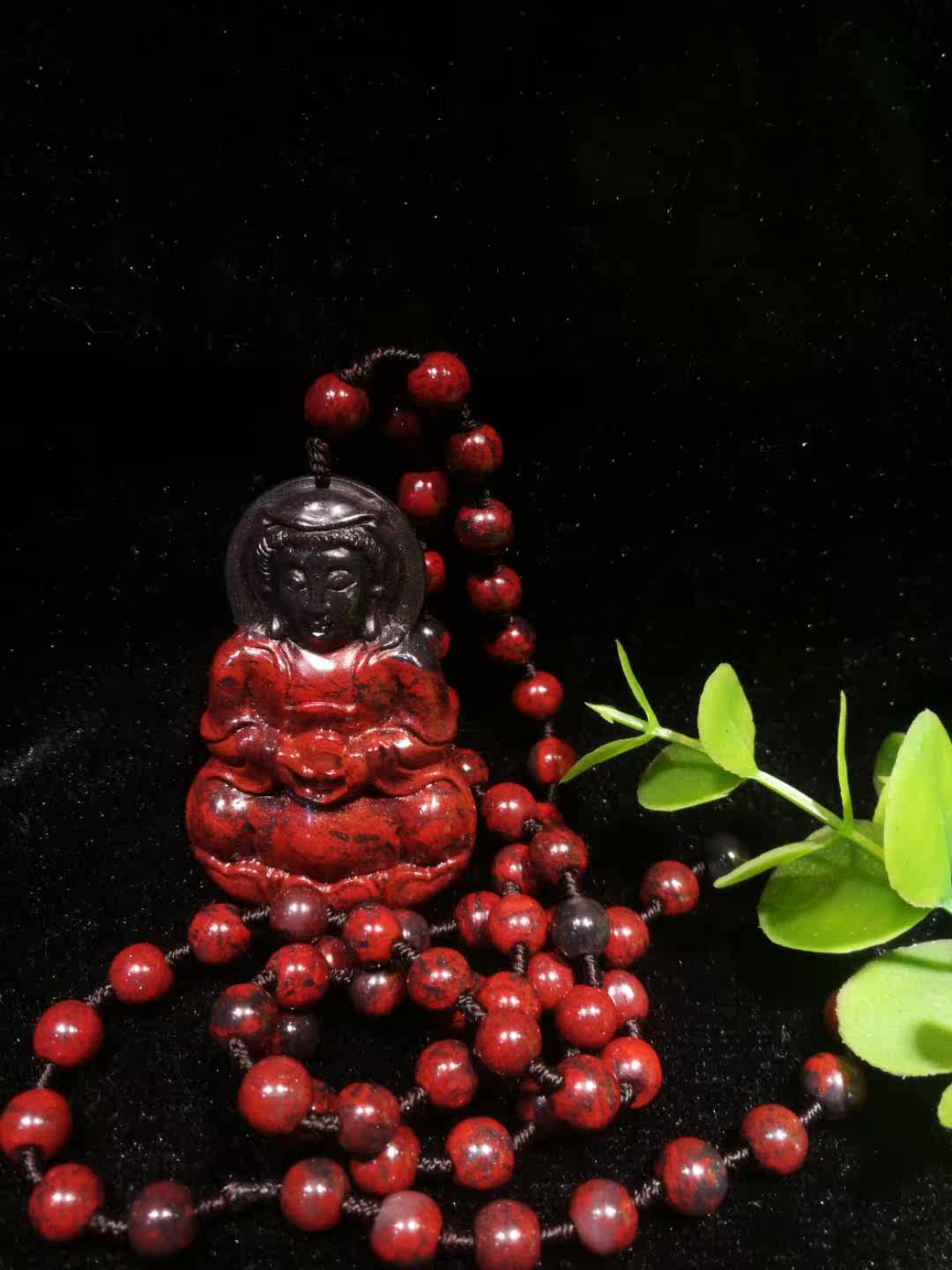 Natural Guilin Chicken blood jade Qiankun material black bottom red positive dress Guanyin hanging decoration necklace wool coat necklace with identification certificate