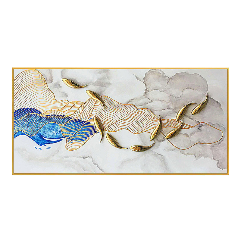 Pure Hand Painted Oil Painting Light Extravagant Physical Nine Fish Tulkin Thread Abstract Decoration Painting Modern Living Room Xuanguan Dining Hall Hung Painting