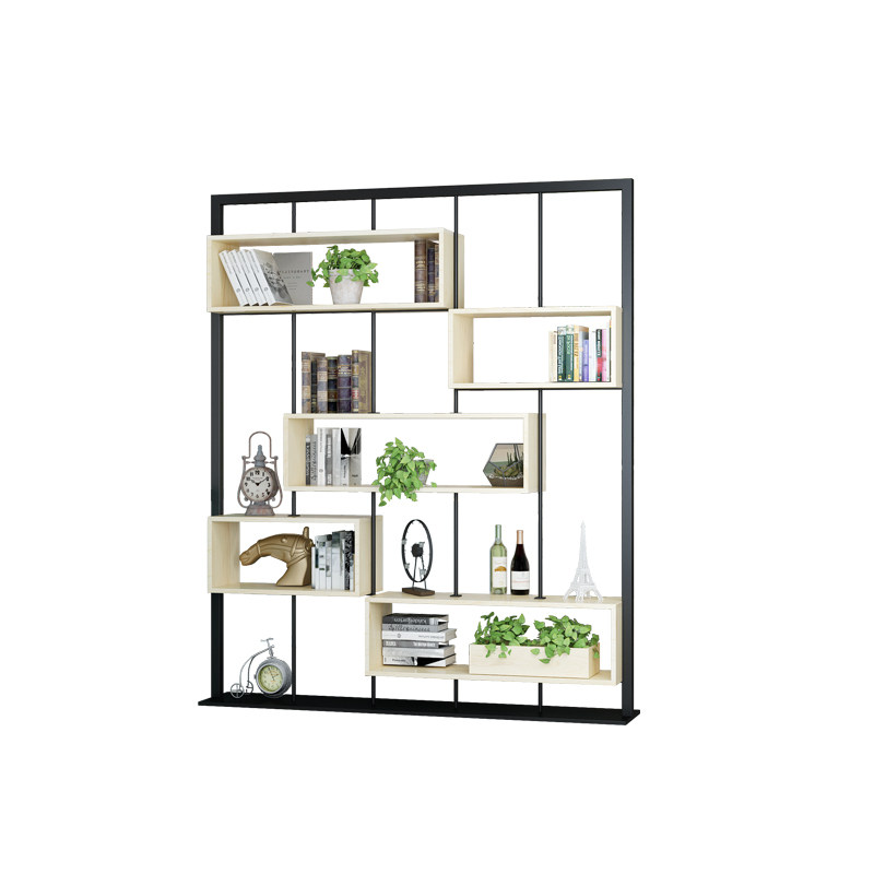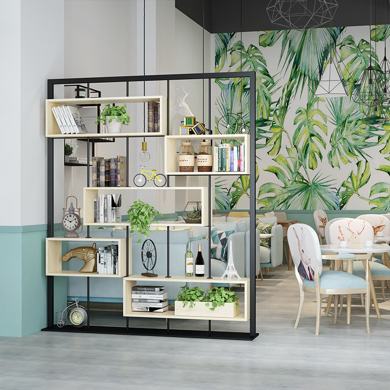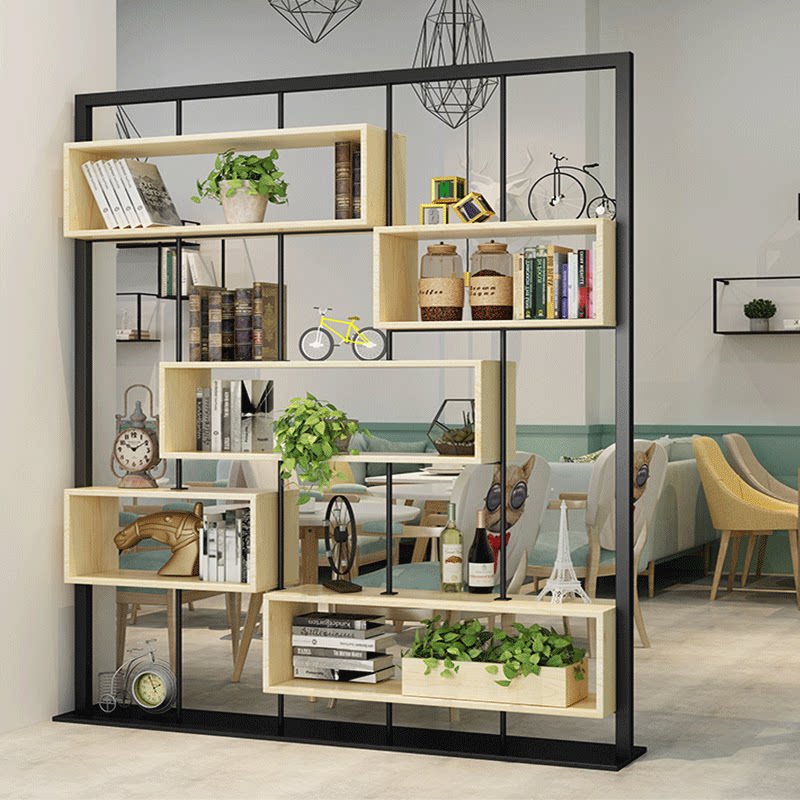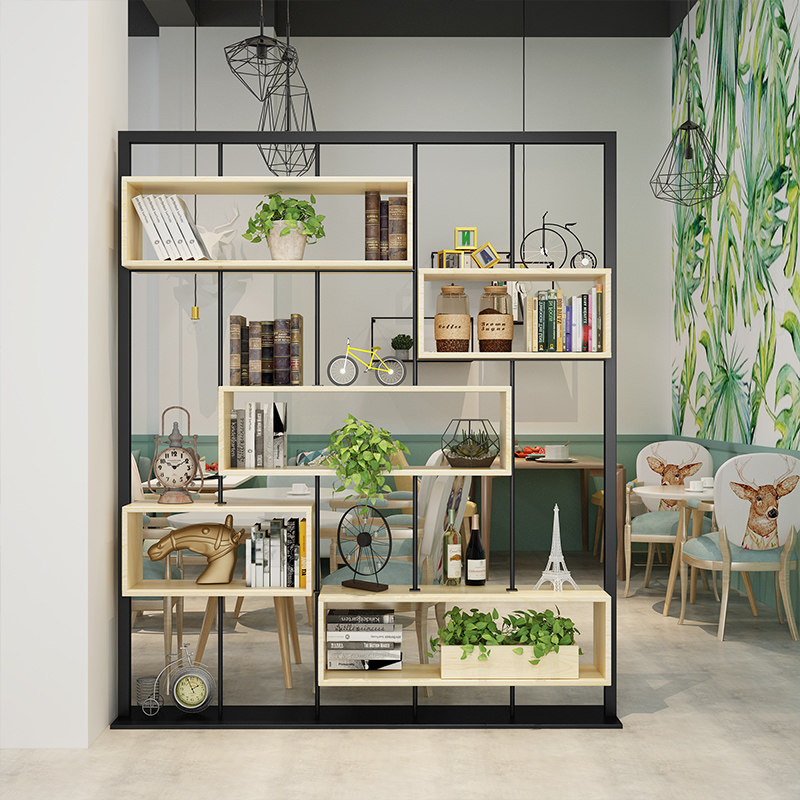 Nordic wrought iron partition solid wood bookshelf floor screen rack modern minimalist living room display rack storage decoration