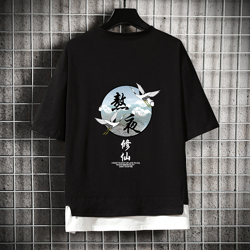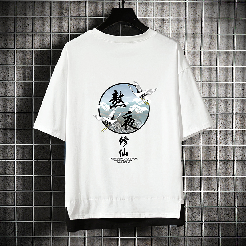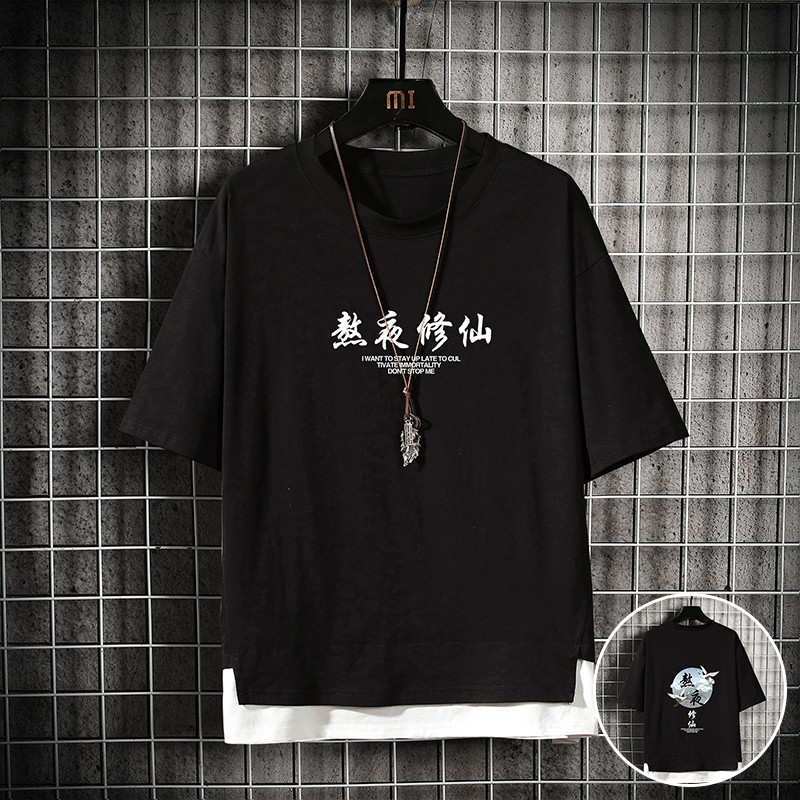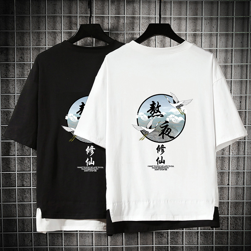 Short-sleeved men's tide brand trend summer cotton half-sleeved t-shirt men's casual round neck top clothes ins loose T-shirt