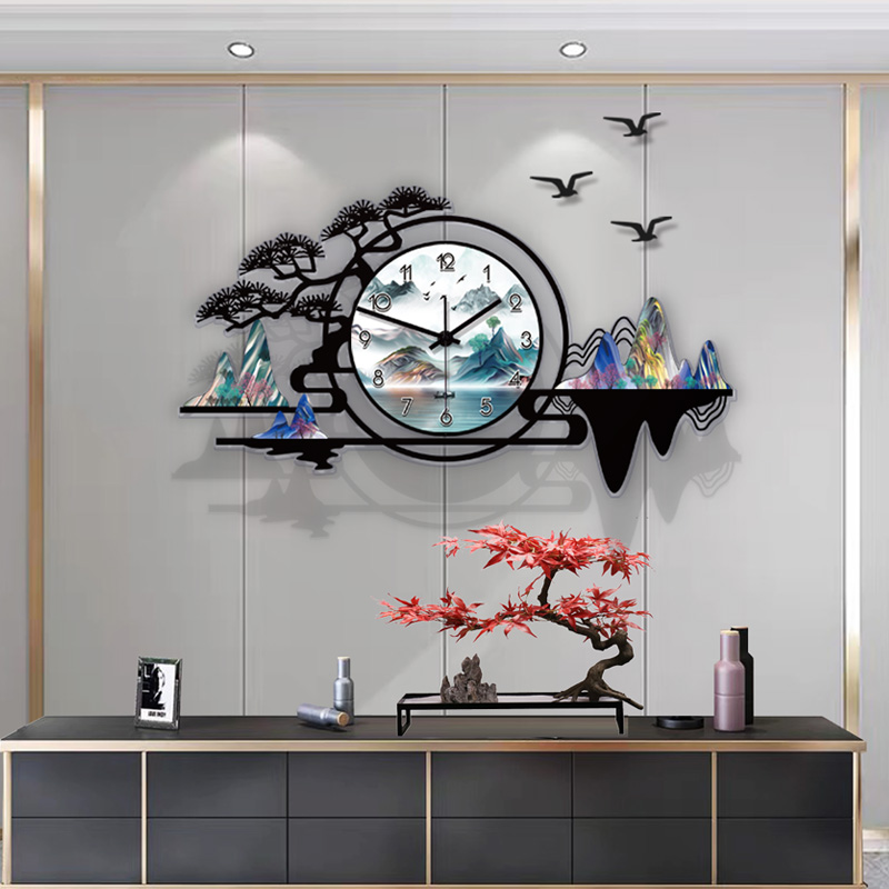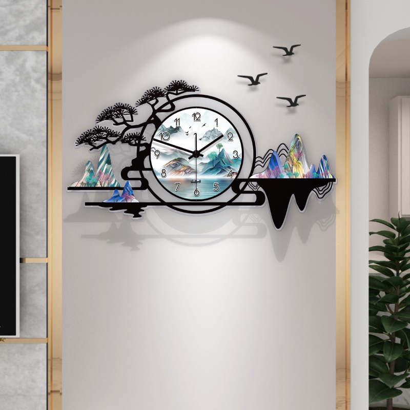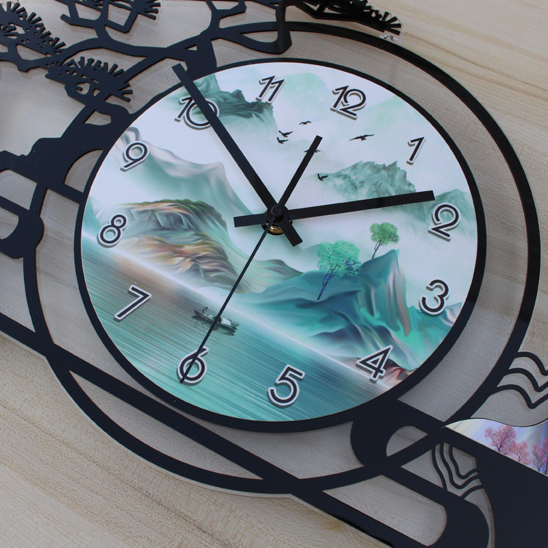 New Chinese style watches and clocks hung in the living room mute wall decoration landscape Chinese wind modern minimalist clock fashion home