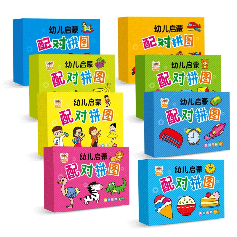 1 box of 32 pieces of Enlightenment Pairing Puzzles (vehicles) 1 box of 32 pieces of Enlightenment Pairing Puzzles (daily necessities) 1 box of 32 pieces of Enlightenment Pairing Puzzles (Animal World) 1 box of 32 pieces of Enlightenment Pairing Puzzles (fruits and vegetables) 1 box of 32 pieces of Enlightenment Matching Puzzles (character classes) 1 box of 32 pieces of Enlightenment Pairing Puzzles (fun toys) 1 box of 32 pieces of Enlightenment pairing puzzles (digital shapes) 1 box of 32 pieces of Enlightenment pairing puzzles (delicious food) 2 boxes of 64 pieces set