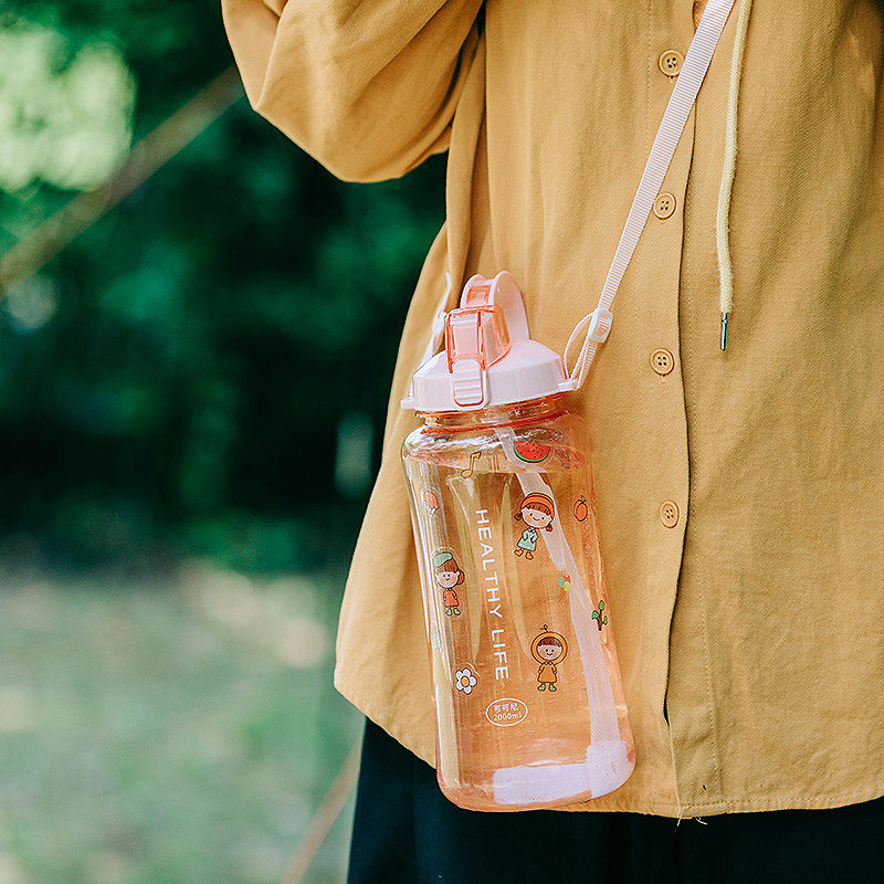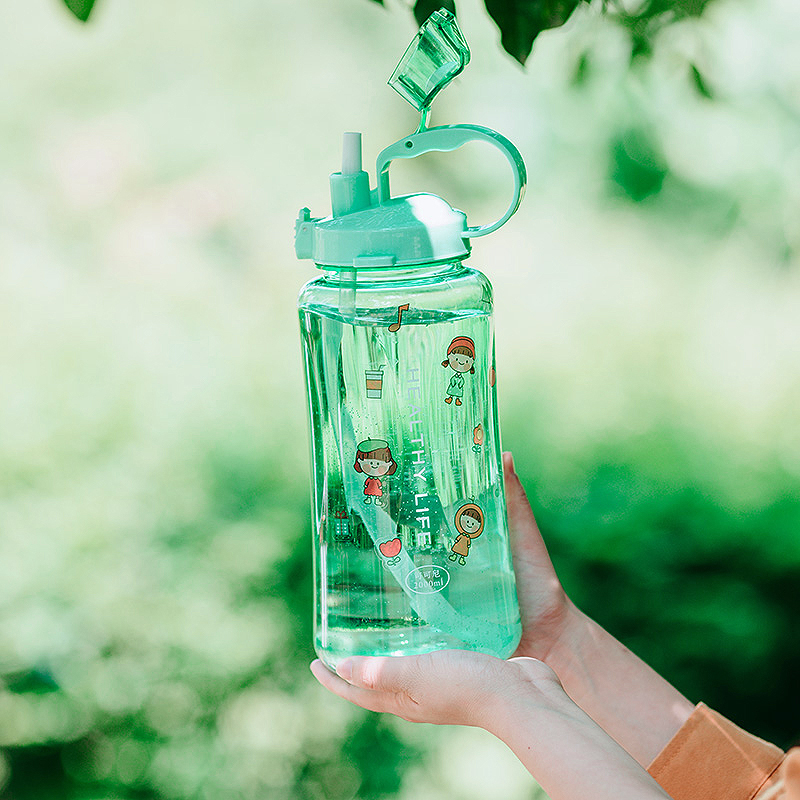 Cute Teenage Girl Sports Kettle Men's Large Capacity Plastic Water Cup Portable Mega Straw Cup Outdoor Water Bottle High Face Value