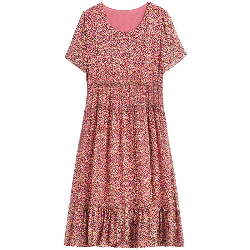 Floral dress women 2021 summer new size belly cover thin middle-aged fat woman short-sleeved temperament chiffon skirt