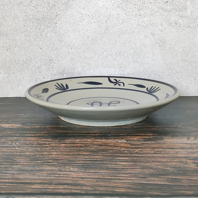 Under Glazed Color Handmade Green Flower Hand-painted porcelain plate Ceramics Xiangvegetable Museum Hotel Stir-dish Saucer Retro Cutlery Commercial