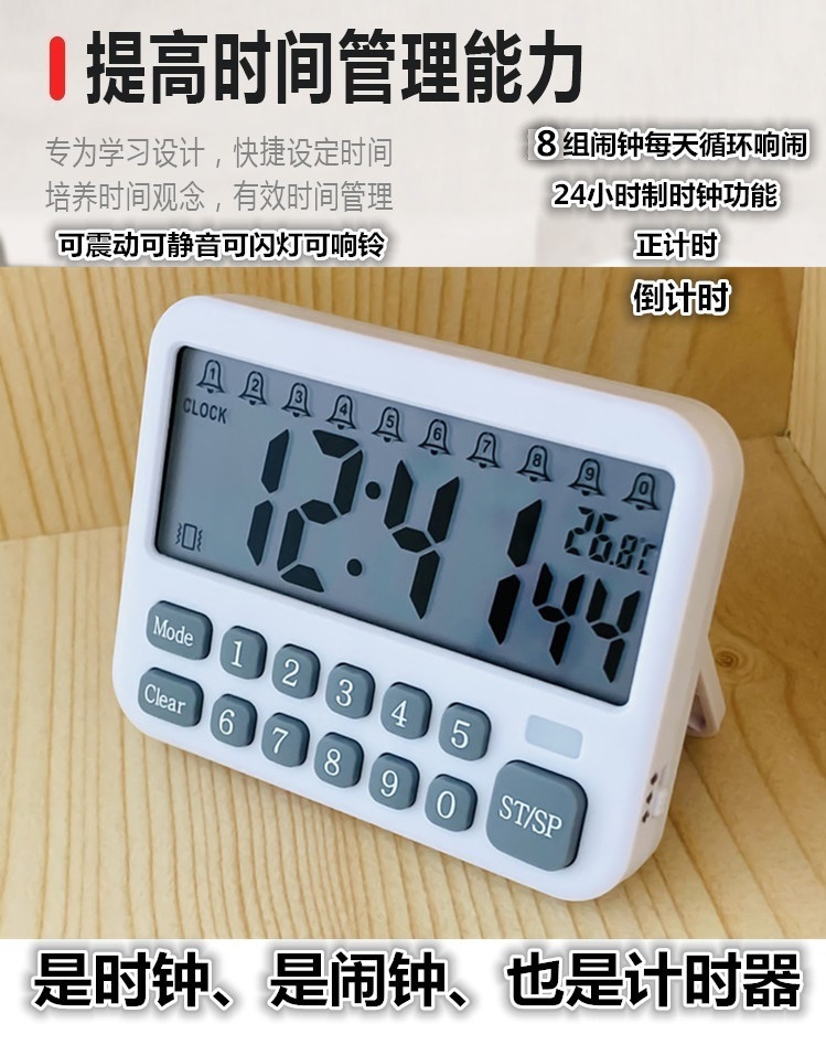 Multiple sets of looping alarm clock Electronic mute clock vibration timer reminder timer Students learn to ring alarms