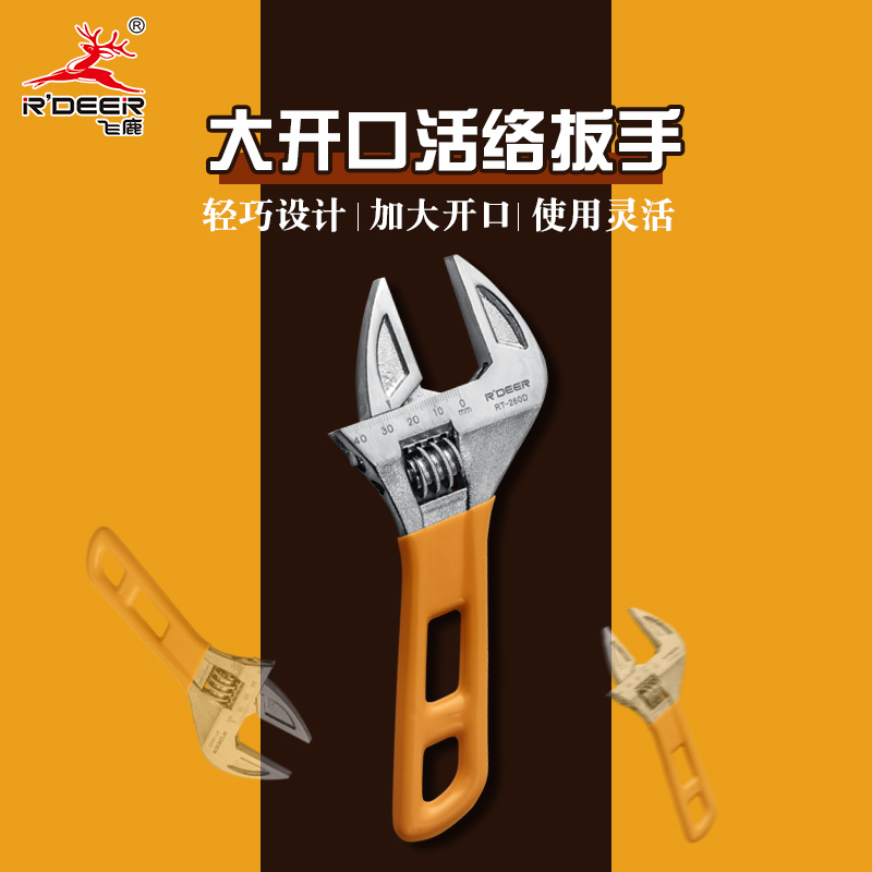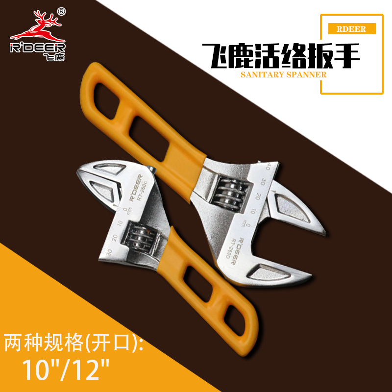 Flying deer tools Large opening wrench short handle active wrench bathroom wrench tube live dual-purpose wrench Home bathroom kitchen