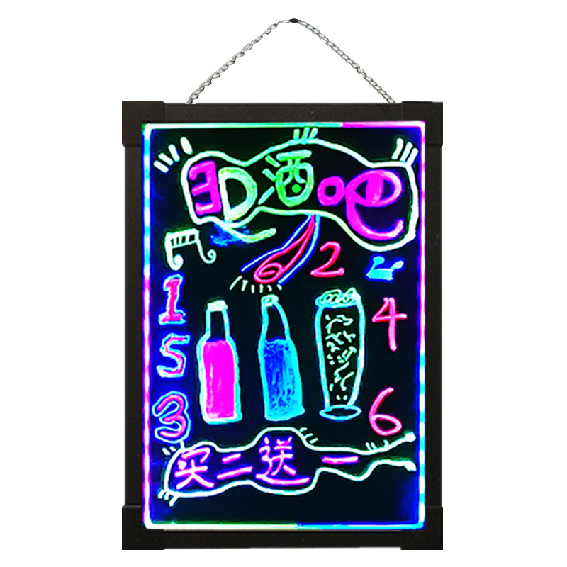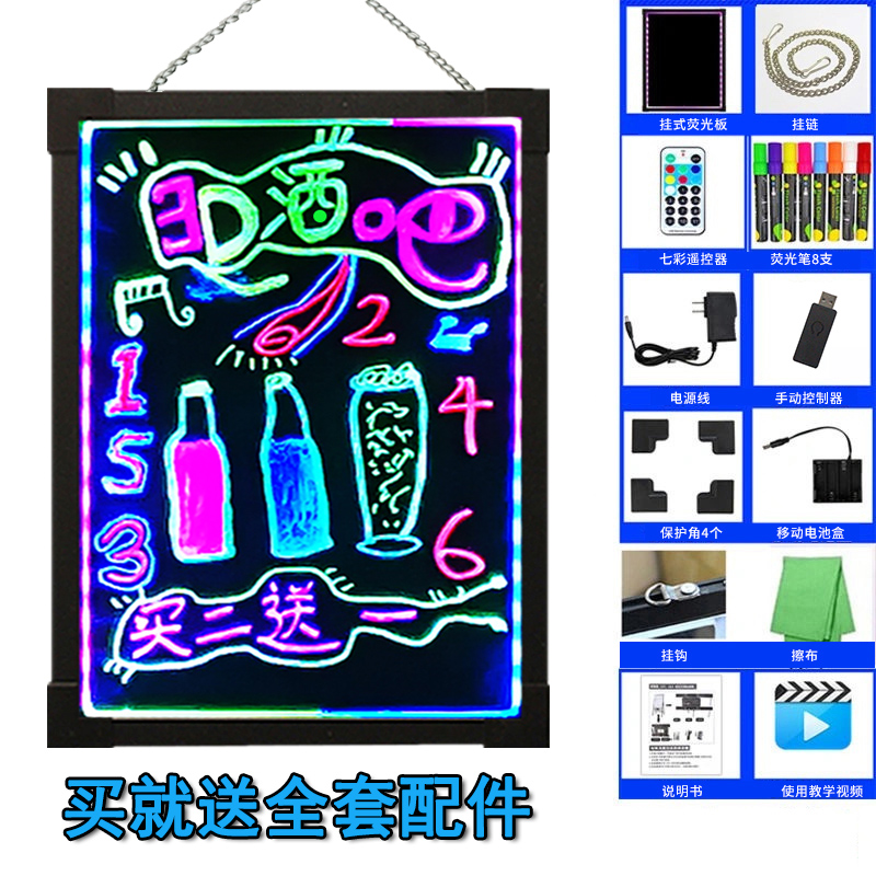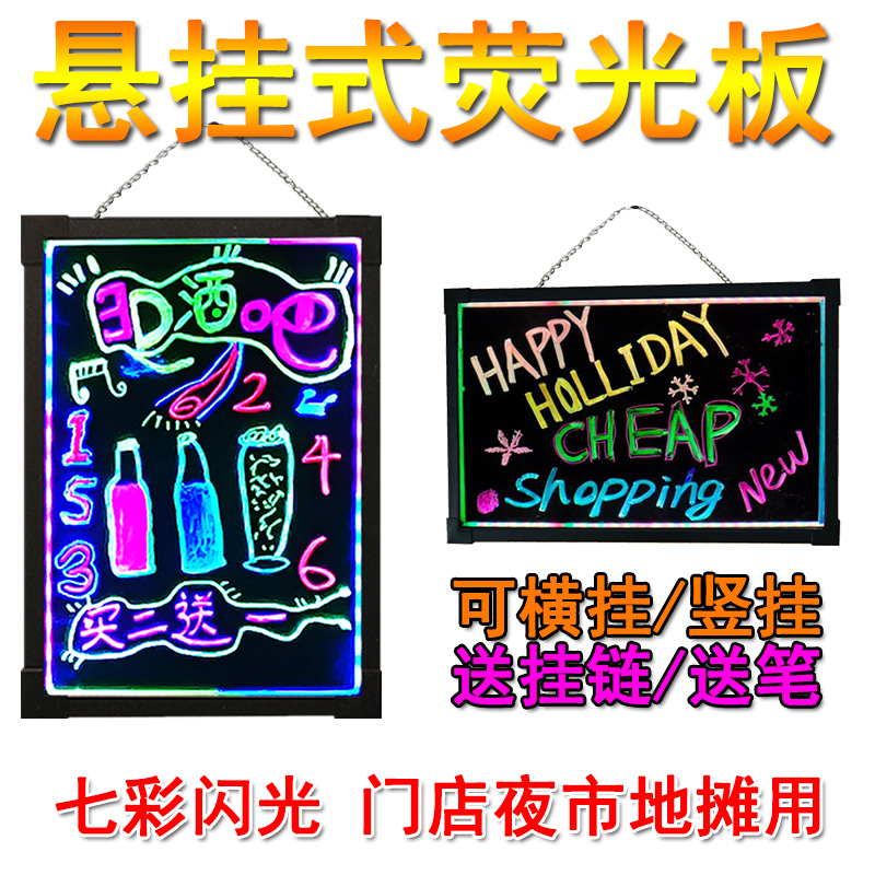 Hanging fluorescent board advertising board luminous small blackboard billboard LED electronic handwriting color flashing luminous screen milk tea nail shop counter charging commercial night market stall artifact