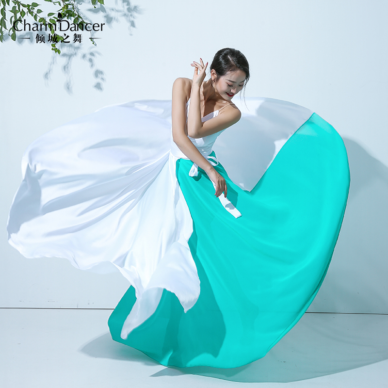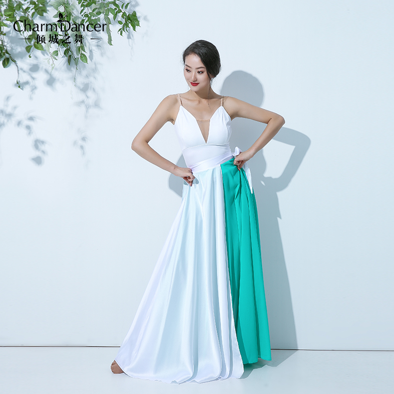 Leaning Town Dance New Classical Dance Large Swing Dress Bicolor Color Strap Halfbody Long Skirt Modern dress 007