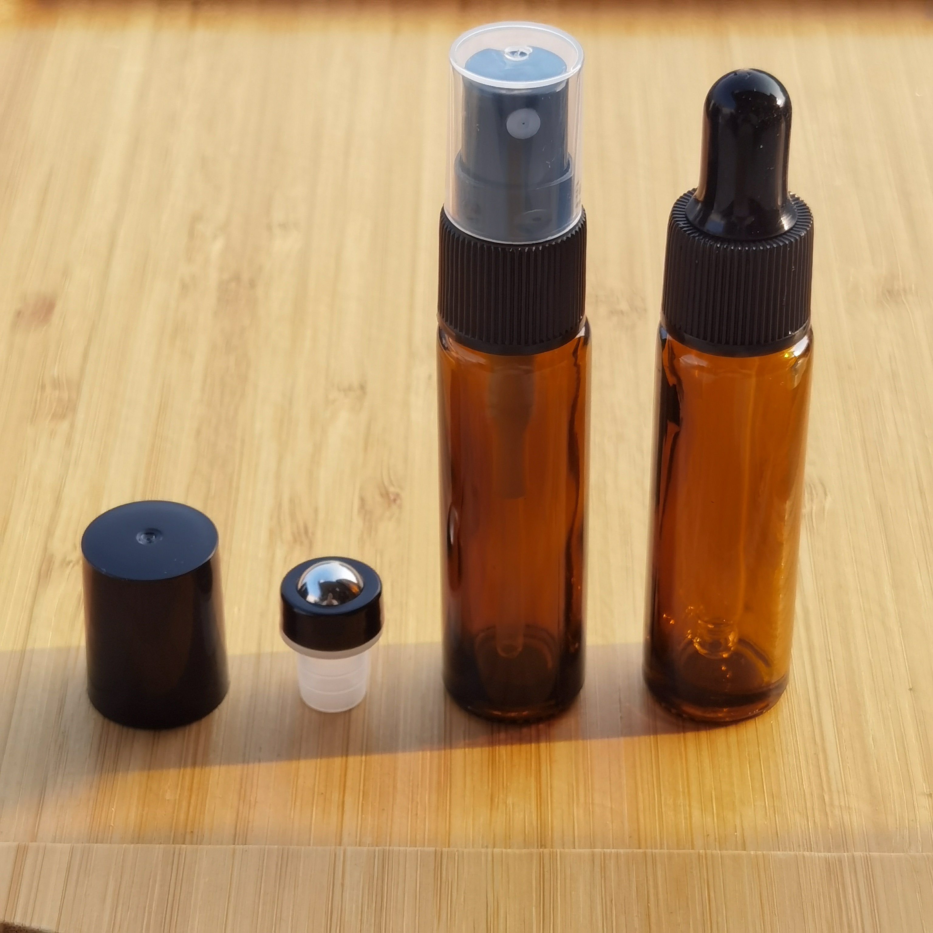 1 10ml tea-colored bottle (ball cap) 6 10ml tea-colored bottles (ball caps)1 10ml tea-colored bottle (spray cap)6 10ml tea-colored bottles (spray caps)