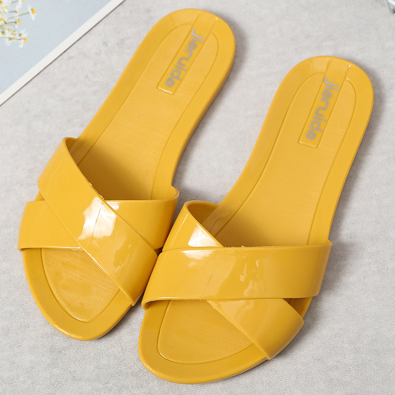 Crystal web Red bursting with cool slippers female summer Fashion outside wearing student Korean version Home I tug bath flat bottom anti-slip