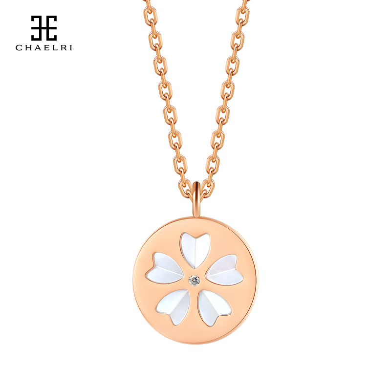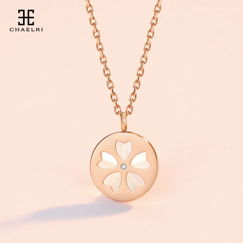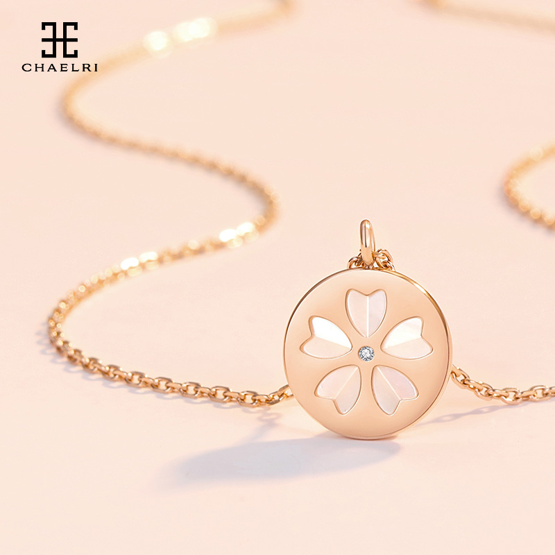 Lammier Cherry Blossom Pearl Bay Shell Necklace Woman Lock Bone Chain Flower Type Flowers Loving White Mother Bay Pendant Pendant