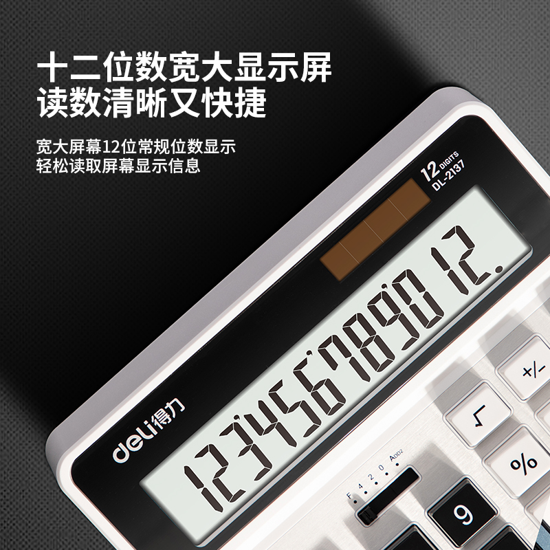 Deli calculator Office special large display screen 12-bit solar cell dual power supply multi-function business computer Bank financial accounting shop calculator dual mode voice calculator