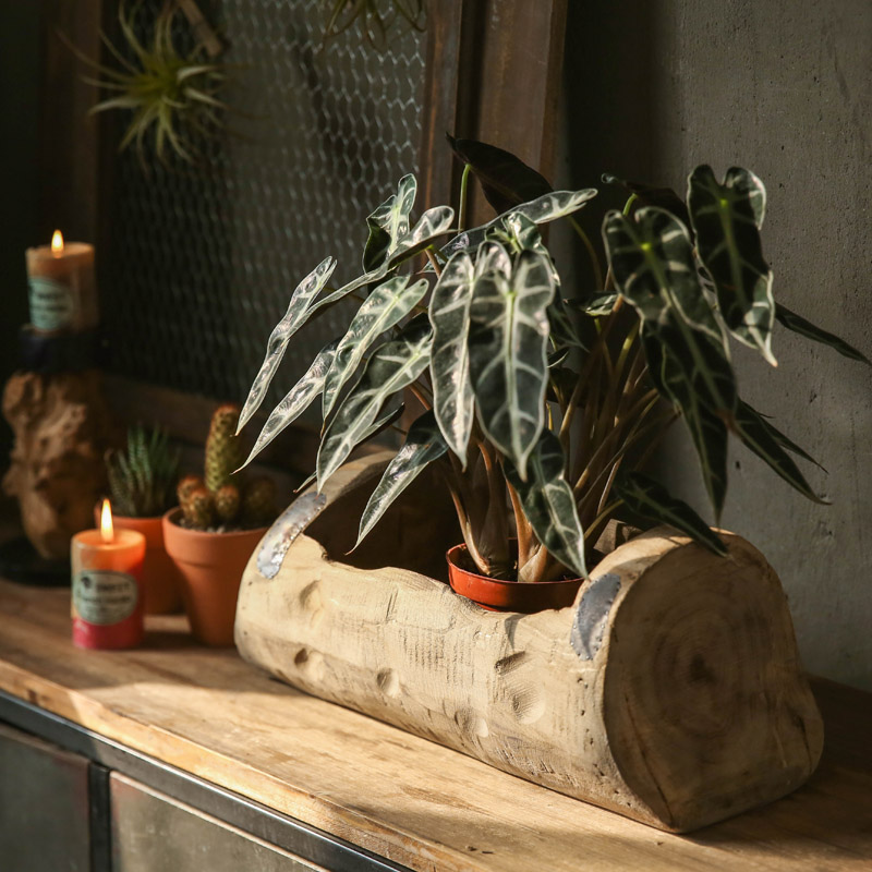 Left bank wheat field quality Park Fragrant Bloom wood Log Flower Trough multi-meat flowerpots Solid wood Garden Pendulum decorations